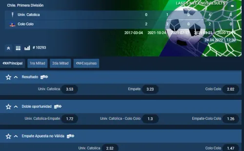 Para Juégalo, el favorito para ganar este partido de la fecha 11 del Campeonato Nacional es Colo Colo, que paga 2,02 veces lo que juegues, por sobre los 3,53 que paga Universidad Católica en este encuentro del estadio San Carlos de Apoquindo. Ahora, si te la juegas por el empate, paga 3,23 veces lo que apuestes.