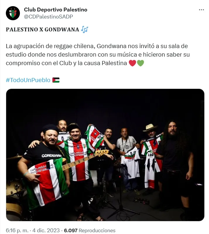 “La agrupación de reggae chilena, Gondwana nos invitó a su sala de estudio donde nos deslumbraron con su música e hicieron saber su compromiso con el Club y la causa Palestina”, señaló la cuenta oficial del equipo árabe en redes sociales, acompañado de la tradicional etiqueta “Todo un Pueblo”.