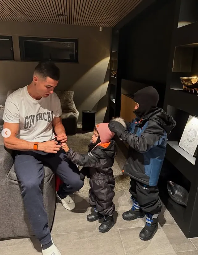 A través de sus redes sociales, el delantero del Al Nassr se encuentra pasando las fiestas en la nieve. El deportista llevó a sus hijos a dar una vuelta en una moto de nieve de alta potencia en el Polo Norte junto a Georgina Rodríguez.