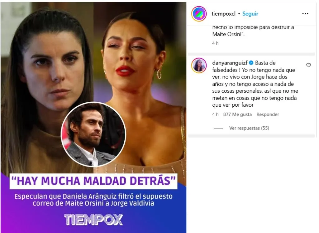 Tras esto, recientemente el panel del programa de farándula “Zona de estrellas” analizó los supuestos mails, en donde Claudia Schmidt se refirió a la posibilidad de que Daniela Aránguiz fuese la persona detrás de la filtración, lo que generó la respuesta de la ex participante de Tierra Brava.