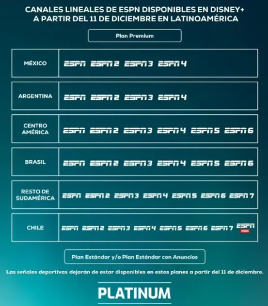 Desde este jueves 11 de diciembre Disney+ aplicará un cambio importante en su servicio para este lado del mundo, las señales ESPN y ESPN 3 de la cadena deportiva dejarán de estar incluidos en el plan Estándar del servicio y se trasladarán exclusivamente al Premium.