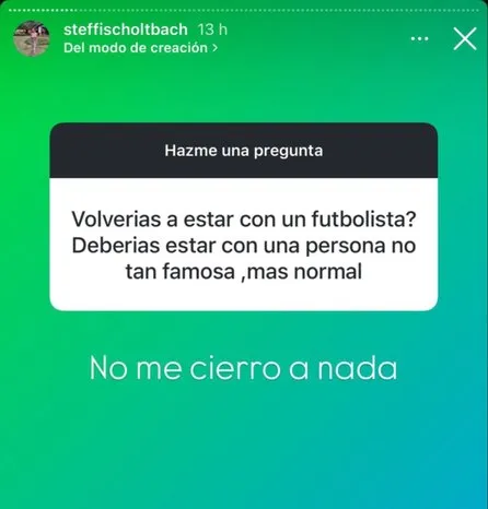 La enfermera fue consultada por uno de sus seguidores sobre si volvería a estar con futbolista. “Deberías estar con una persona no famosa, más normal”, le escribió, a lo que Steffi respondió: “No me cierro a nada”.