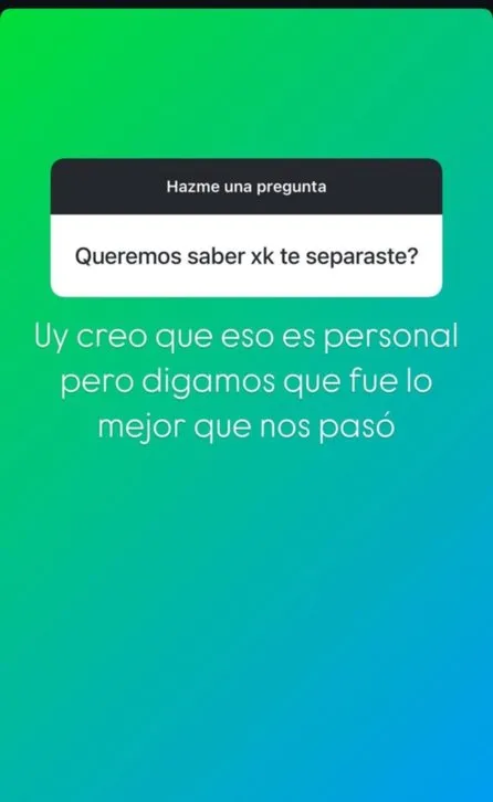 También fue preguntada directamente por los motivos del quiebre con el ídolo azul, a lo que señaló que es una situación personal, agregando: “pero digamos que fue lo mejor que nos pasó”.