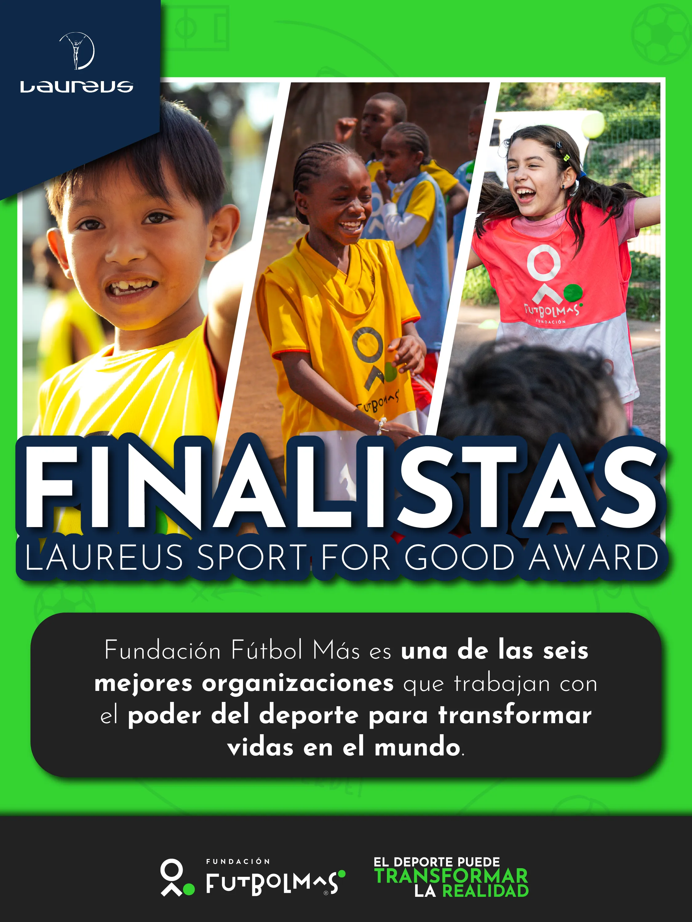 Entre los premiados en ediciones anteriores se encuentran Simone Biles, Novak Djokovic, Usain Bolt, Rafael Nadal y Lionel Messi. El anuncio de la lista de seis organizaciones finalistas se realizó en un evento en Madrid que reunió a empresas, organizaciones sociales y referentes del mundo deportivo, y fue difundido a través de las plataformas oficiales de Laureus. Guillermo Rolando, director ejecutivo global de Fútbol Más, valoró la nominación.