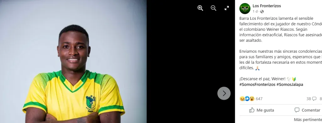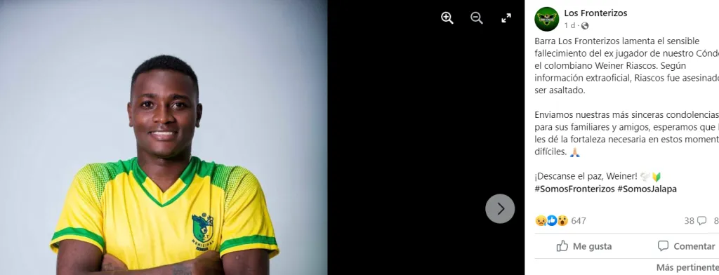 Según confirmó la barra los Fronterizos en su Facebook oficial, el futbolista “fue asesinado luego de ser asaltado”, rezaba la publicación de la hinchada del Municipal Jalapa, cuadro que se desempeña en la primera división de Nicaragua. Allí jugó 16 partidos en 2021-2022. Todo ocurrió en Cali, su ciudad de origen.