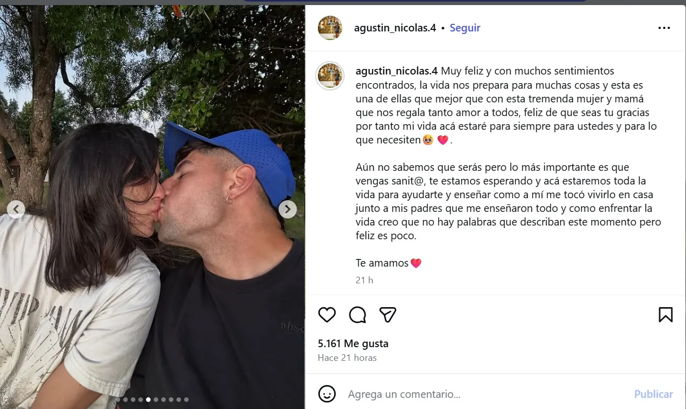 “Aún no sabemos que serás, pero lo más importante es que vengas sanito/a, te estamos esperando y acá estaremos toda la vida para ayudarte y enseñar, como a mí me tocó vivirlo en casa junto a mis padres que me enseñaron todo, y como enfrentar la vida, creo que no hay palabras que describan este momento, pero feliz es poco”.