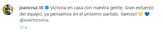 “Gran esfuerzo del equipo, ya pensamos en el próximo partido”, fue parte del mensaje que dejó el ex Real Oviedo en su cuenta de Instagram. Sabe que la serie sigue abierta. Y que el puntero del Campeonato Nacional 2024 tiene los medios suficientes como para remontarla.
