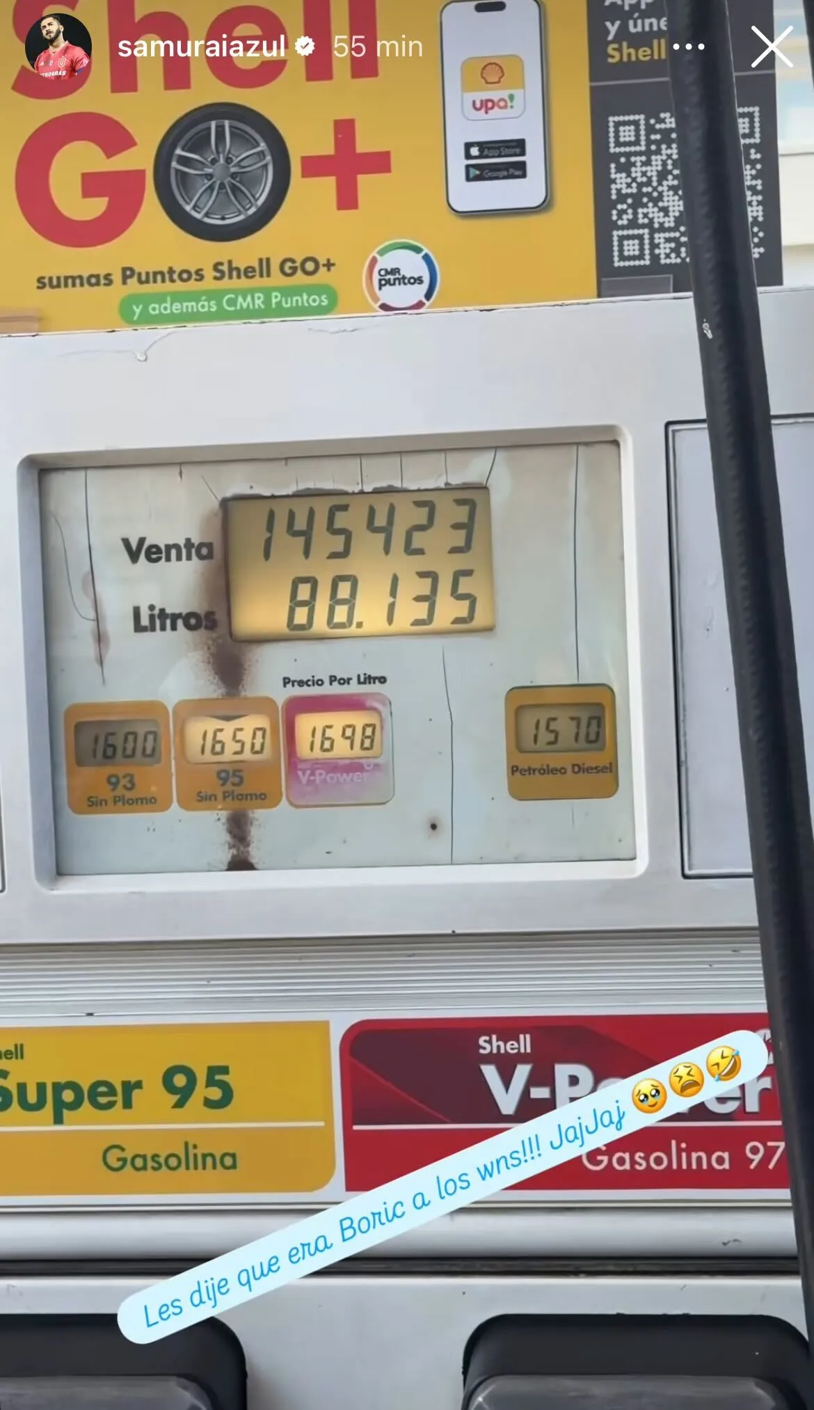 En ese sentido, mientras cargaba su vehículo con un monto que, en ese instante iba en 145 mil pesos, donde aprovechó de tirar la talla para sus seguidores en redes sociales.