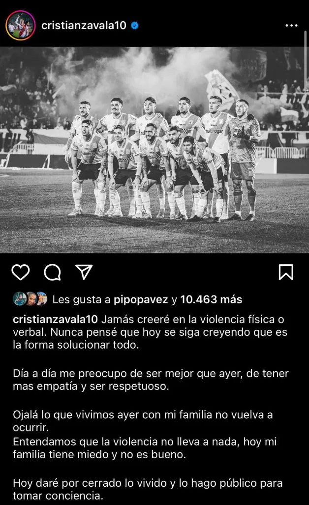 “Lamentamos y repudiamos la agresión que sufrió nuestro compañero Cristián Zavala y su esposa, quienes fueron atacados por un grupo de ‘hinchas’, en el trayecto del estadio a su casa luego del partido ante Unión La Calera”, expresaron.