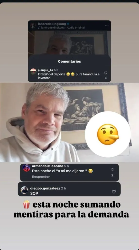 En una primera instancia reveló, por medio de una historia de Instagram que está en proceso de acudir a la justicia por los dichos del King Kong: “Esta noche sumando mentiras para la demanda”.