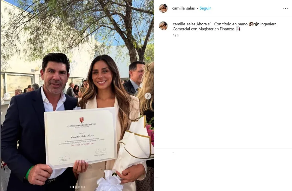 En la publicación, la joven escribió: “Ahora sí… Con título en mano. Ingeniera Comercial con Magíster en Finanzas”.