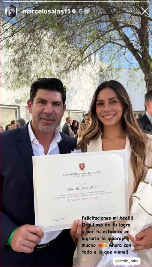 Una importante noticia compartió Camila Salas, la hija del histórico futbolista nacional Marcelo “Matador” Salas, a través de sus redes sociales, en donde, como era de esperarse, el exseleccionado nacional le dedicó unas tiernas palabras.