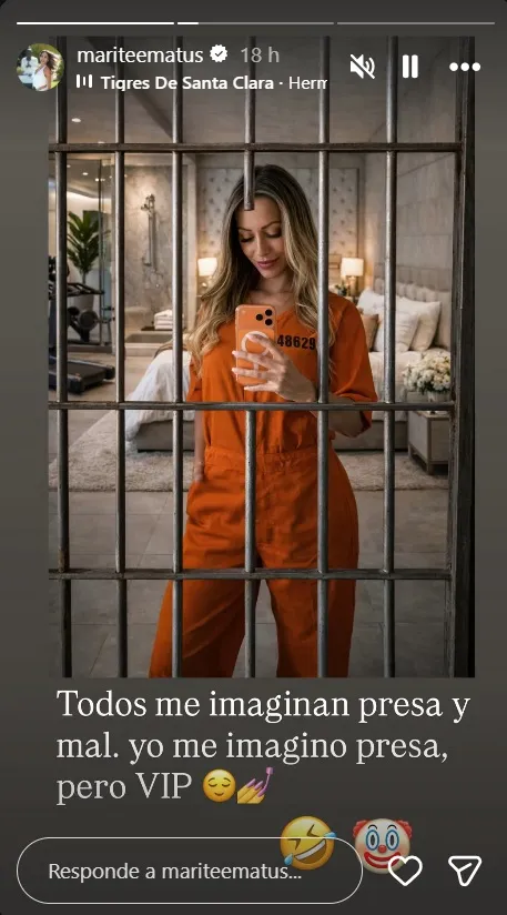 En la misma línea, a través de sus redes, Marité publicó un provocativo video aludiendo a la querella. “Todos me imaginan presa y mal. Yo me imagino presa, pero VIP”.