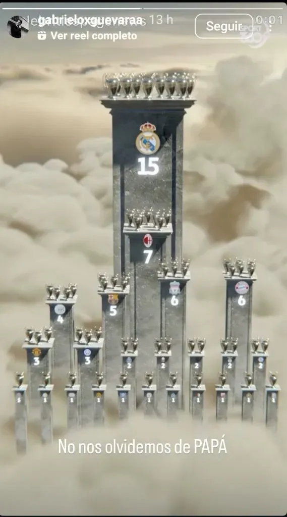 “No nos olvidemos de papá”, escribió haciendo alusión a las 15 copas que ha obtenido el equipo en su historia.