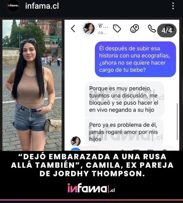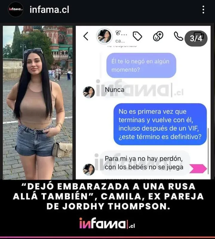 Una nueva polémica acaba de comenzar entre Jordhy Thompson y Camila Sepúlveda, luego de la joven arremetió contra el futbolista de FC Orenburg acusándolo de negar su paternidad y además, lo acusa de infidelidad y de tener una nueva pareja, quien también, según su relato, estaría embarazada.