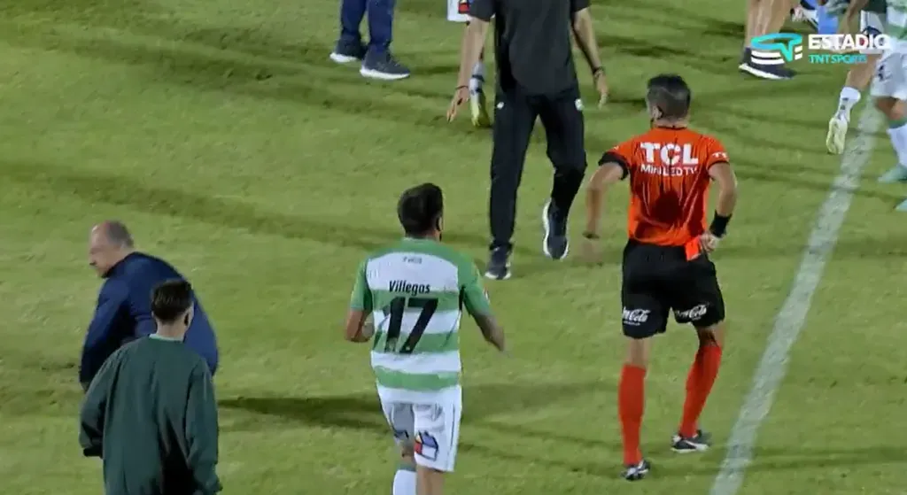 Villegas fue escoltado por dos compañeros: Fabián Núñez, autor del gol que dio el triunfo a los albiverdes, fue el primero. “Ahí está la complicación y por qué lo expulsaron. Me parece que no hay una situación plantel para eso. No hay ningún golpe”, comentó Luis Marín en la transmisión de TNT Sports.
