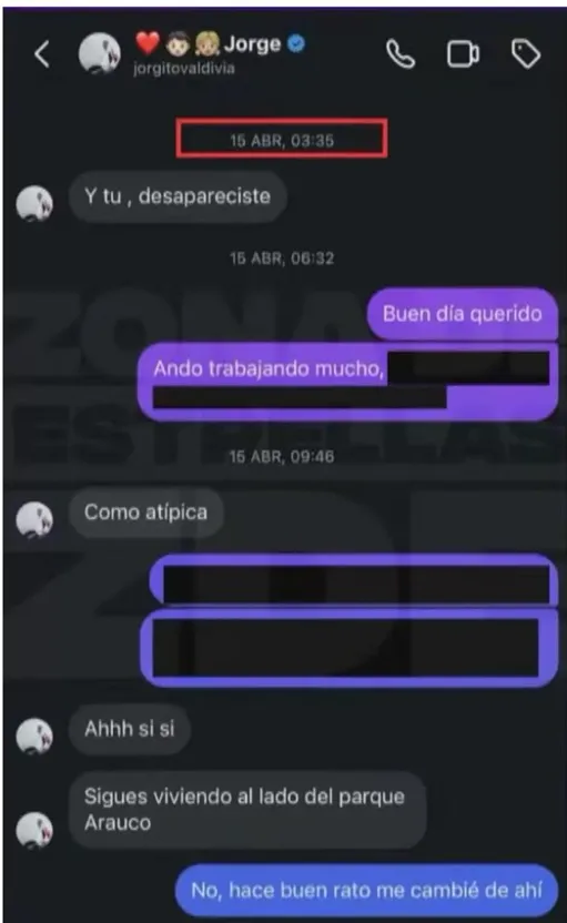 En un nuevo capítulo de Zona de Estrellas el panel reveló un inesperado coqueteo entre dos conocidas figuras del espectáculo: Jorge Valdivia y Thais Jordao, expareja de Iván Núñez, quienes, aseguran, se habrían enviado múltiples mensajes por redes sociales.