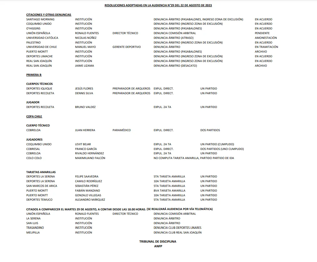 Por cierto, dentro del mismo documento se aprecia que la denuncia del árbitro Nicolás Millas en contra del gerente deportivo de Azul Azul, Manuel Mayo, sigue “en tramitación”, así que tendrá que esperar para saber cuándo tendrá que presentar su defensa.