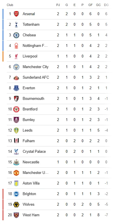 Tabla de posiciones de la Premier League
