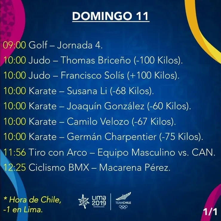 Esta es la agenda del Team Chile para la última jornada de los Juegos Panamericanos Lima 2019: