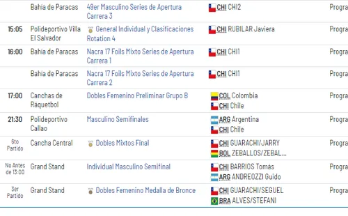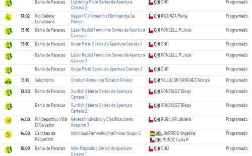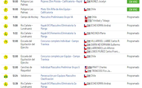 Por si fuera poco, hay más prubeas que tendrán a chilenos como protagnistas en el Ecuestre, la Vela, y hovkey césped masculino, entre otros.