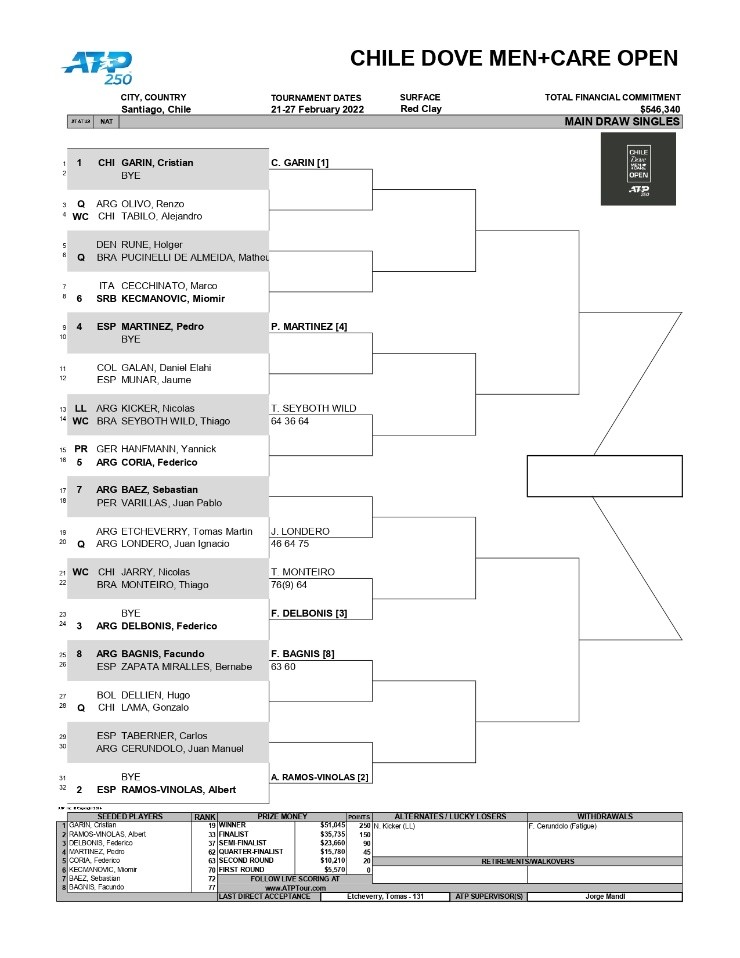 Resultados de la primera jornada del ATP 250 de Santiago de Chile – Chile Open 2022