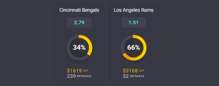 Para el OSO de Coolbet, el gran favorito para ganar elSuper Bowl LVI son Los Angeles Rams, que pagan 1,51 veces lo que juegues, por sobre los 2,79 que pagaCincinnati Bengals, si crees que ellos serán los vencedores.