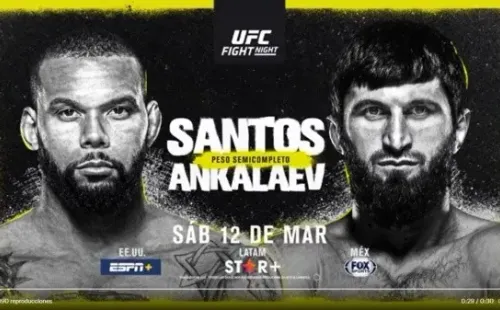 DÍA Y HORA: ¿Cuándo es la pelea de Santos vs Ankalaevpor la UFC Fight Night 50?