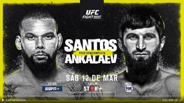 Televisión: ¿En qué canal VER EN VIVO por TV UFC 50: Santos vs Ankalaev?