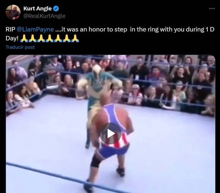 El video generó tantas reacciones entre los fanáticos del músico y de la lucha libre, que fue el propio Kurt Angle quien compartió el video en sus redes sociales, señalando este jueves 17 de octubre a través de “X” “RIP @LiamPayne….¡fue un honor subir al ring contigo durante el 1D Day!”.
