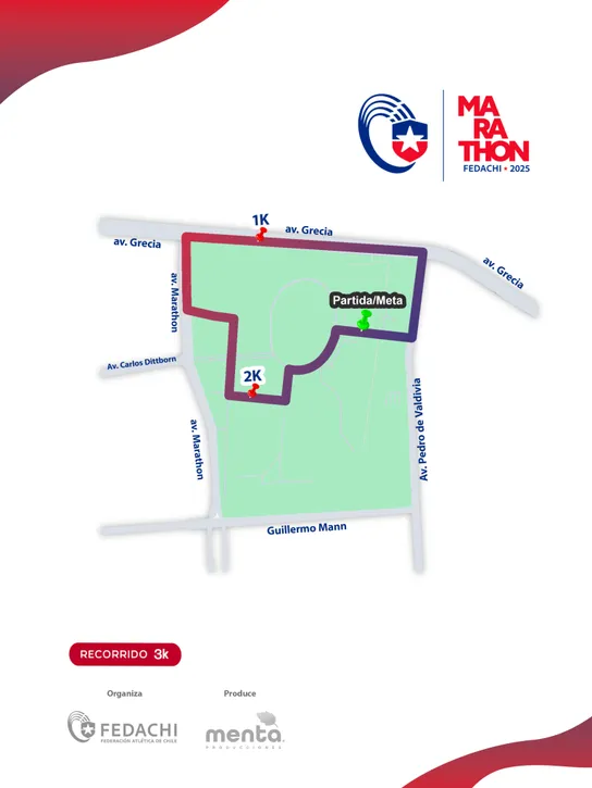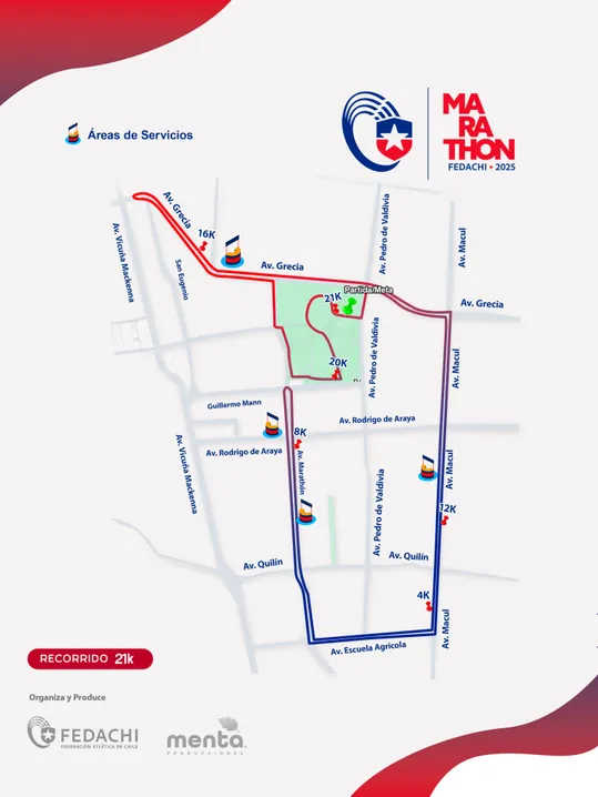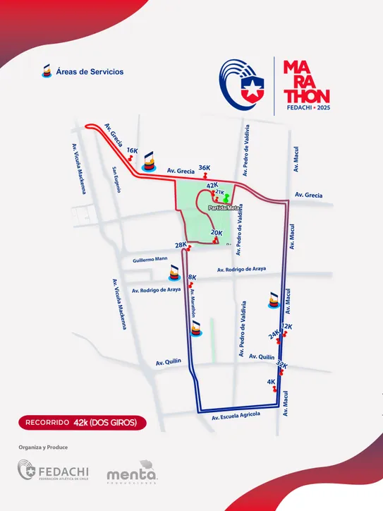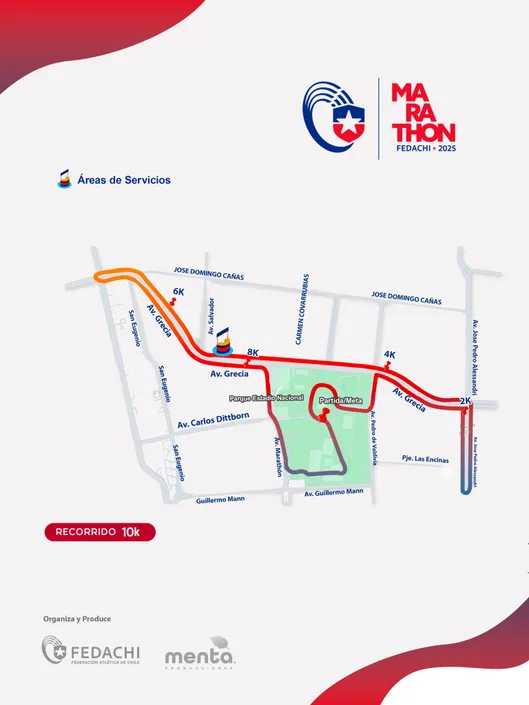 El Fedachi Marathon tendrá su largada y meta en el Parque Estadio Nacional, cuyo circuito pasará por las comunas de Ñuñoa y Macul.