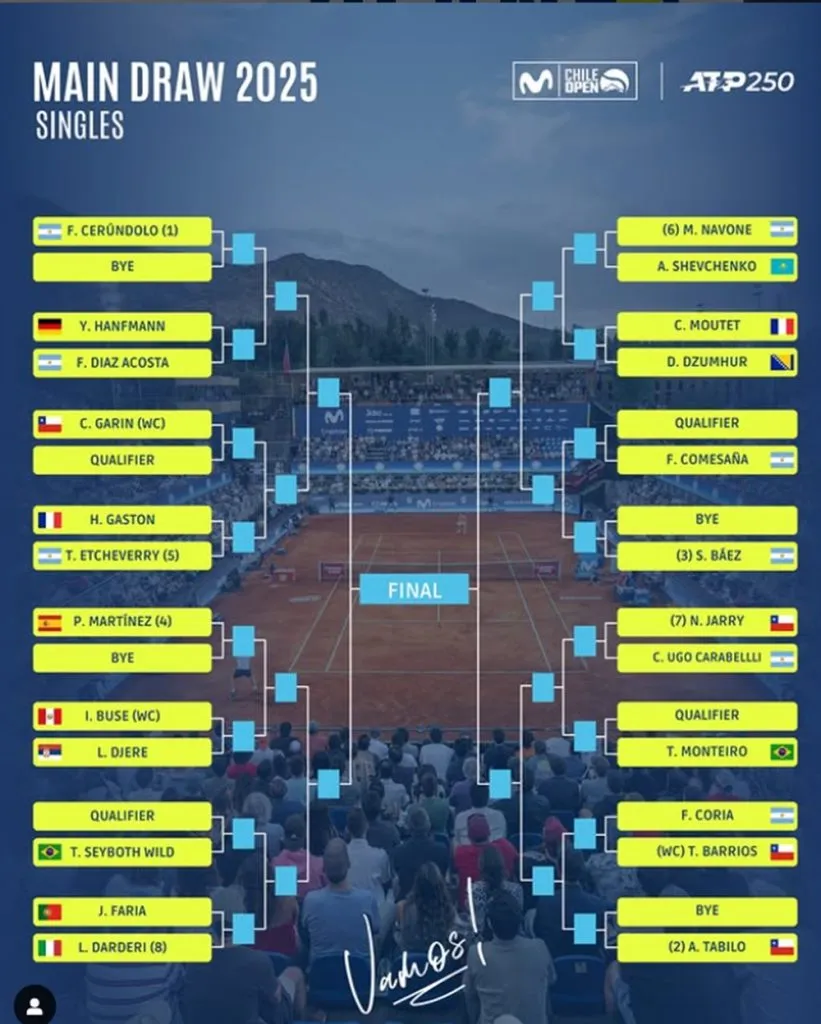 Este sábado se reveló los duelos del cuadro principal del Chile Open 2025 en donde las figuras nacionales Cristian Garín, Alejandro Tabilo y Nicolás Jarry se medirán de forma individual en esperados partidos con el fin de levantar la ansiada copa.