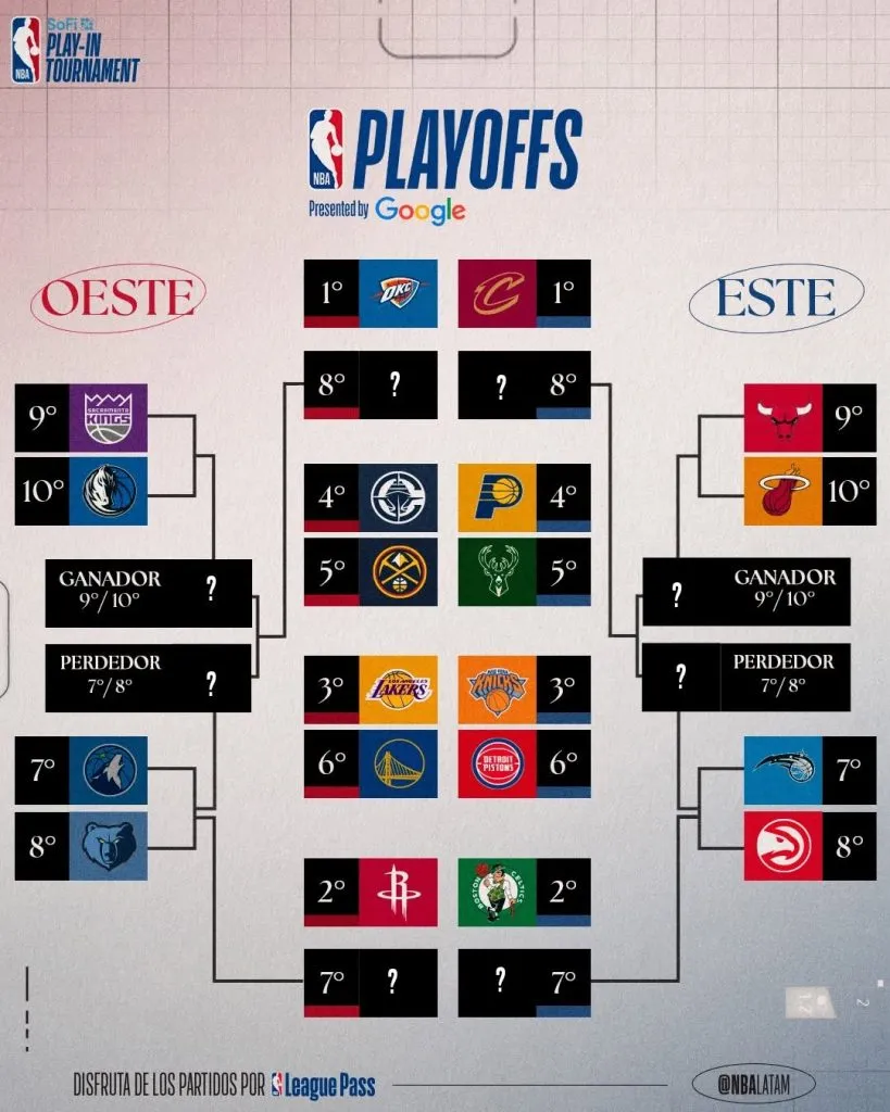 Así, los duelos del séptimo y el octavo lugar se jugarán entre Atlanta Hawks y Orlando Magic (Conferencia Este) y Golden State Warriors y Memphis Grizzlies (Conferencia Oeste). Mientras que Chicago Bulls y Miami Heat (Conferencia Este), por un lado, y Sacramento Kings y Dallas Mavericks (Conferencia Oeste), por otro, disputarán el duelo del 9º y 10º lugar.