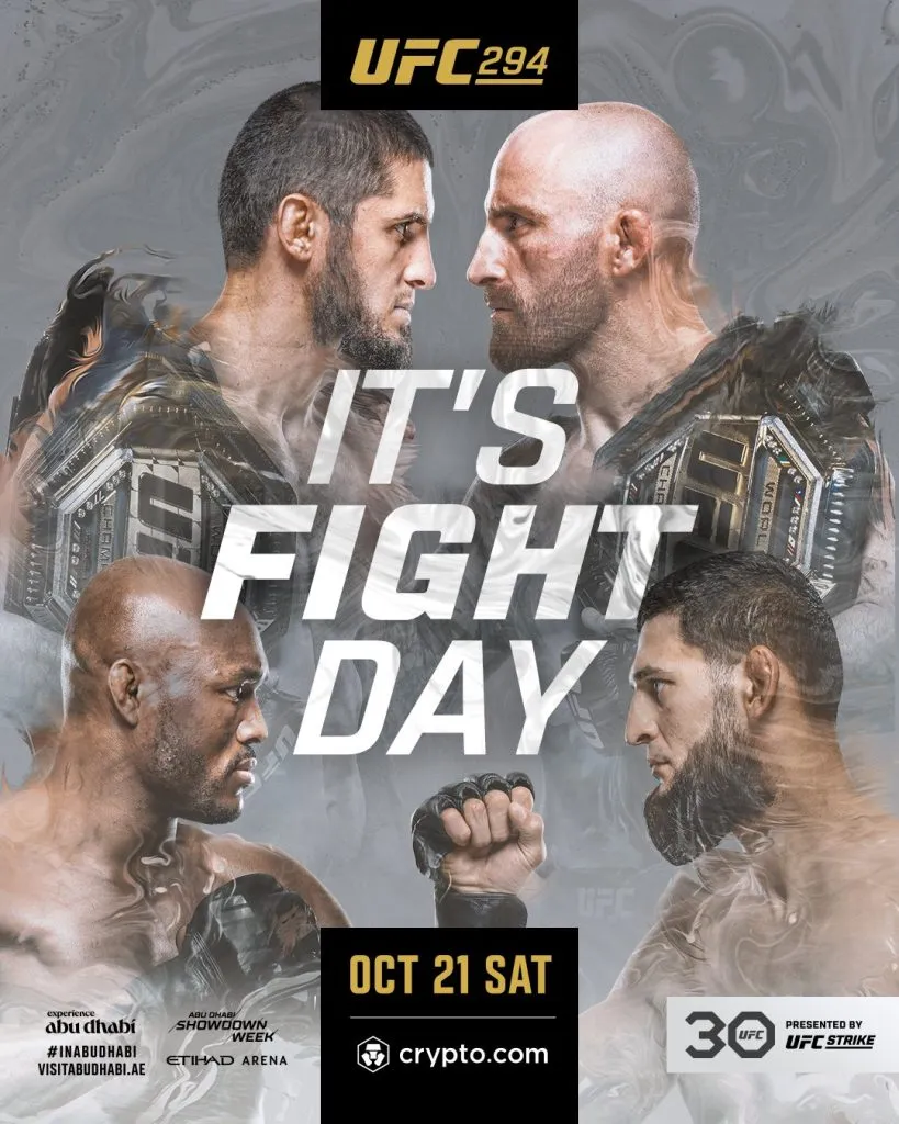 La tarde de este sábado la Ultimate Fighting Championship nos invita a la ciudad de Abu Dhabi, en los Emiratos Árabes Unidos, para una velada de infarto en el marco de UFC 294.