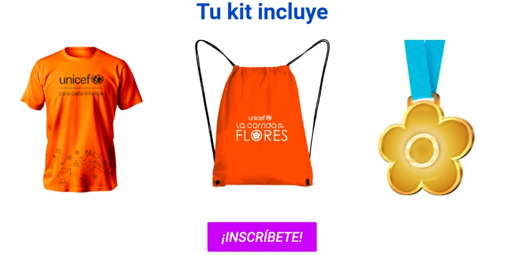 El kit contiene una polera especial de la corrida de las flores. Además te espera una medalla al terminar el recorrido.