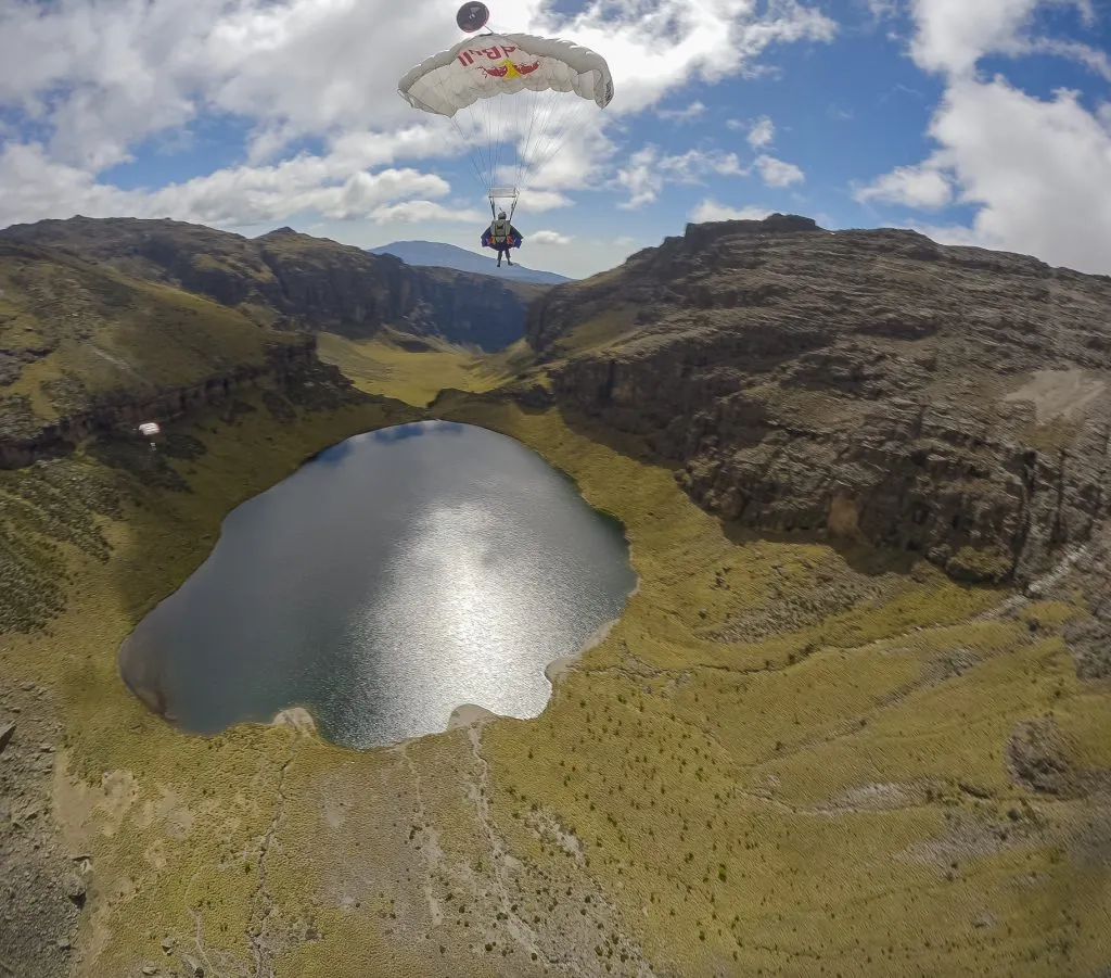 “En el lugar que escogimos para volar existía poca densidad de aire, por lo que tuvimos que ocupar un helicóptero específico y oxígeno. La logística de mover y empacar todo en altura nos desafiaba deportivamente”, complementó el deportista.