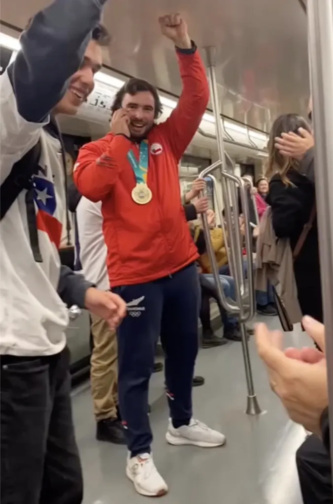 Con el paso de las horas, y más calmado, el ganador de una medalla de oro en los Juegos Panamericanos se fue a su casa como un chileno más: en el Metro de Santiago. Ahí lo pillaron varios compatriotas que se dirigían a sus hogares, quienes le dedicaron un gran aplauso en la Línea 6 de transporte.