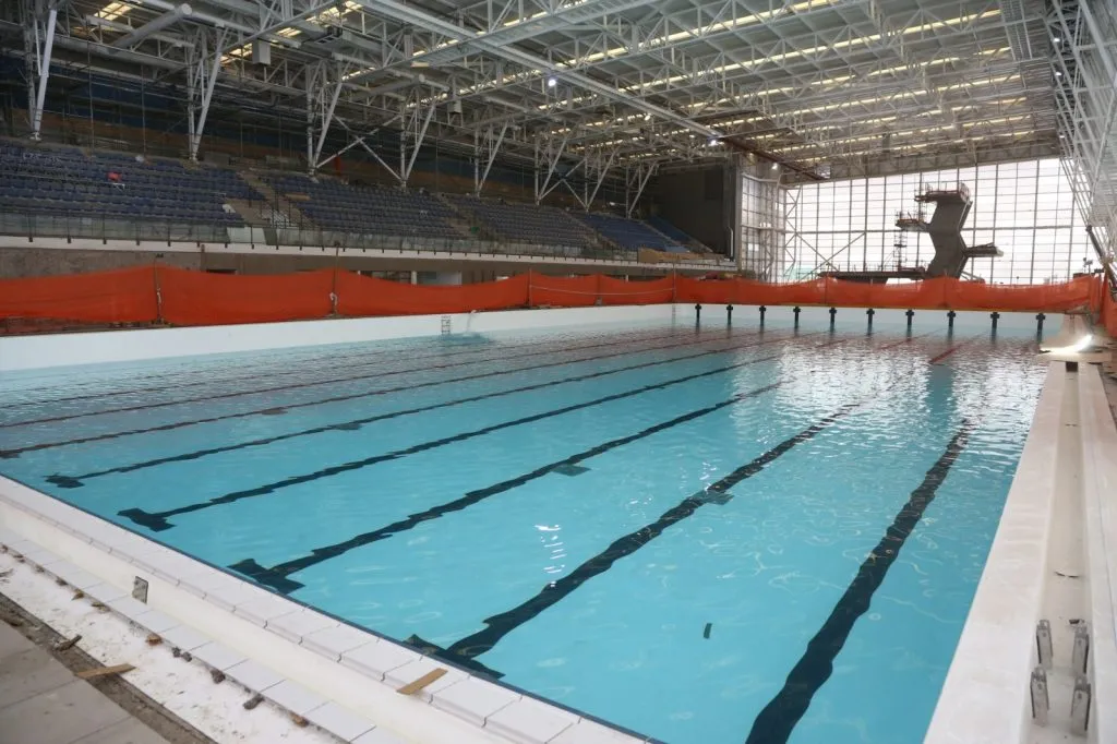 Ya empezó a llenarse una de las tres piscinas olímpicas que tiene el centro, y ese proceso llevará cinco días para completarse. Una de las piscinas es de 50 x 25 metros y tiene una profundidad de 2:20 metros, y se usará para entrenar.