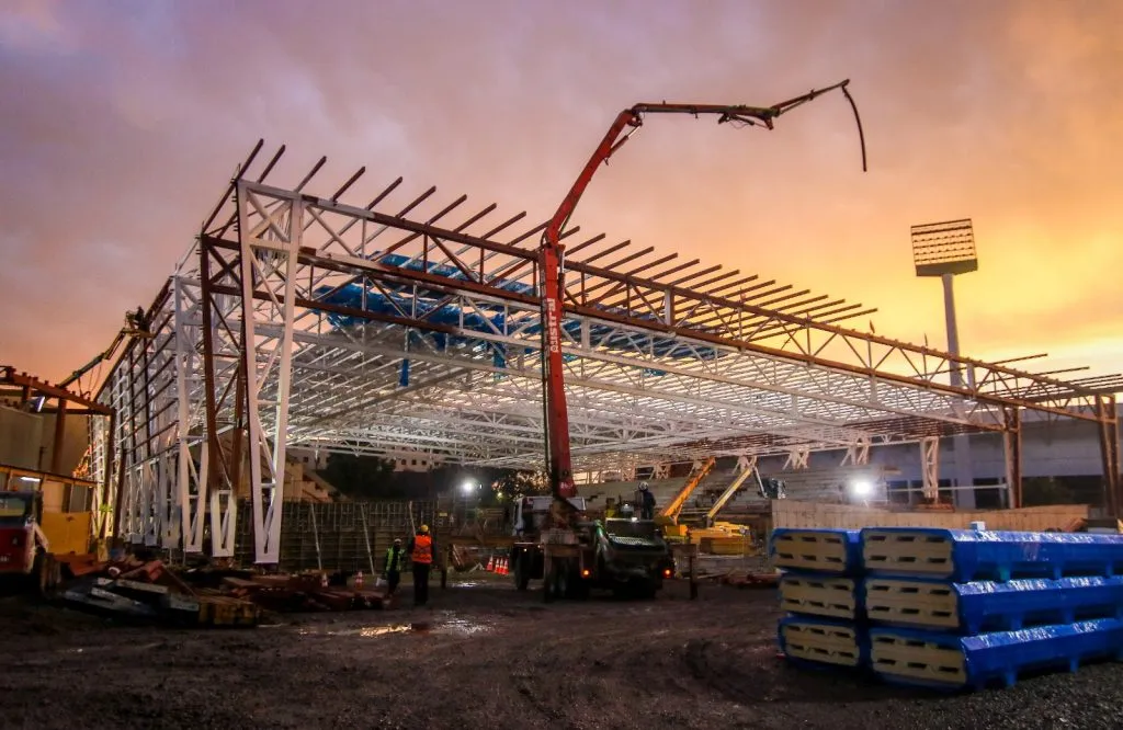 Por último, Jaime Pizarro, el ministro de Deporte, señaló que “la fecha que nosotros barajamos es septiembre. El avance es rápido porque van sucediendo diferentes fenómenos: uno es la obra propiamente tal, pero también muchas de estas obras se trabajan con piezas prefabricadas que acá se van solamente montando”.