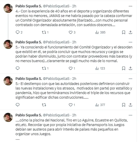 Por medio de su cuenta de Twitter, el ex atleta declaró que “el presupuesto aprobado por la Presidenta Bachelet fue de 187 millones de dólares. Un peso más y nos quedábamos sin Juegos. A esos 187 millones US$ se le suman unos 130-150 US$ de la Villa Pana y Parapanamericana”.