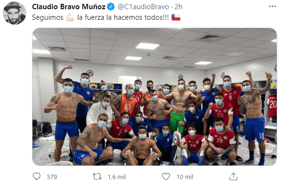 Por su parte, el capitán Claudio Bravo también compartió la postal del vestuario junto a las palabras “seguimos. La fuerza la hacemos todos”.