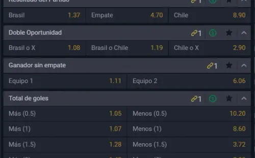 Para Betsala, el favorito para ganar este partido de las Eliminatorias Sudamericanas al Mundial de Qatar 2022 es Brasil, que paga 1.37 veces lo que juegues, por sobre los 8.90 que paga la Roja, si crees y tienes aún la fe en que los de Martín Lasarte lograrán la hazaña. Ahora, si eres de quienes piensa habrá empate, paga 4.70 veces lo que juegues.
