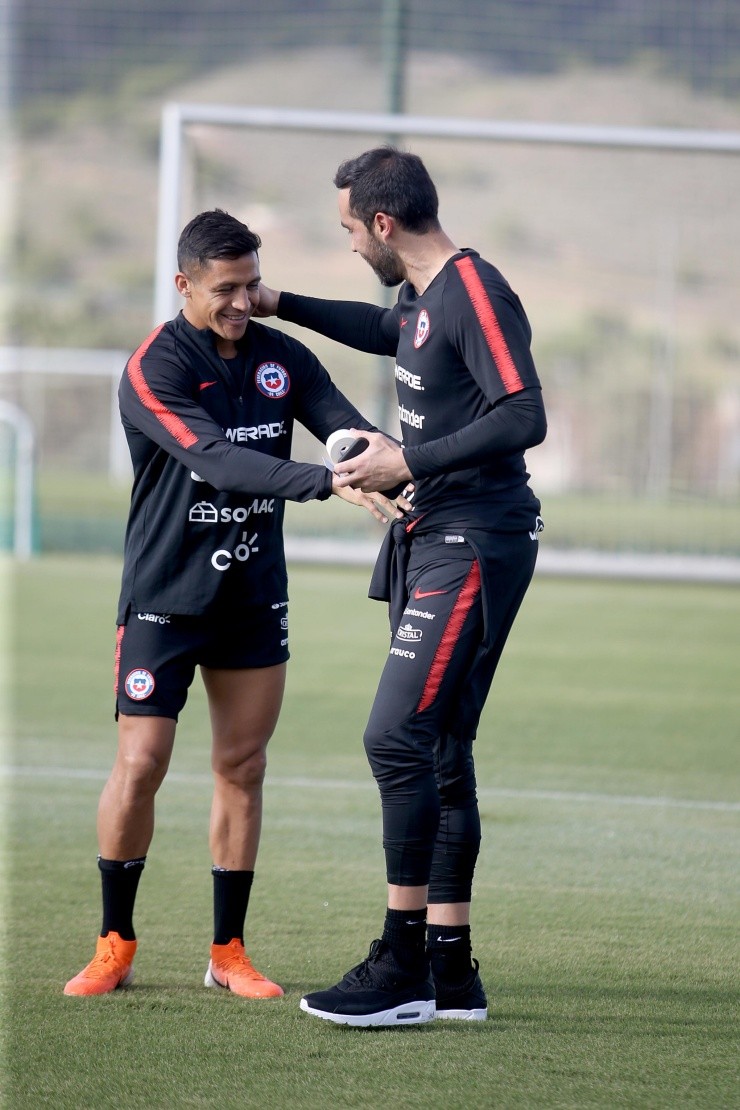 Sí estuvo Claudio Bravo, quien se mostró cariñoso con el DT, sus compañeros y, particularmente, con Alexis Sánchez. También saludó de manera muy amena a todo el cuerpo técnico.