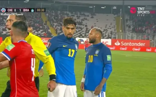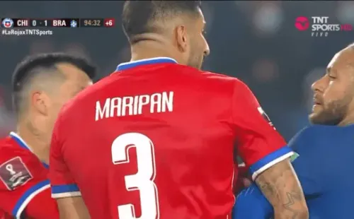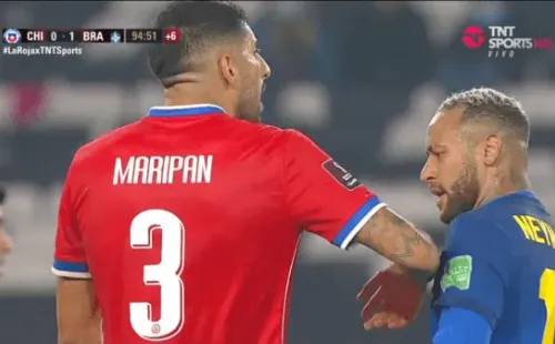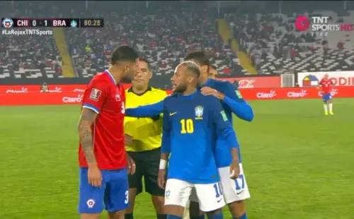 Maripán y Neymar estuvieron a anda de animar una pelea: se calentaron sobre el final del Chile-Brasil. (Foto: Capturas TNT Sports)