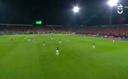 Nadie se dio cuenta de que un carabinero estaba dentro de la cancha al momento del minuto de silencio. | Foto: Guillermo Salazar.