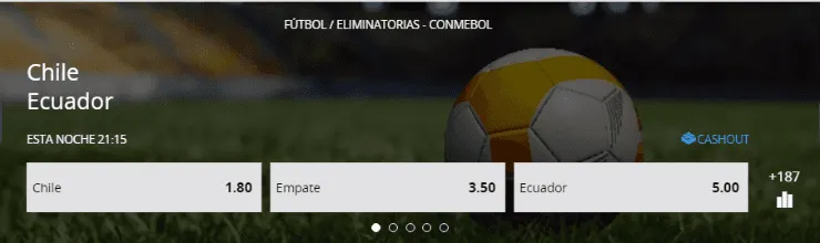 Para Betsson, el gran favorito para ganar en este partido de las Eliminatorias Sudamericanas al Mundial de Qatar 2022 es Chile, que paga 1,80 veces lo que juegues, por sobre los 5,00 que paga Ecuador, si piensas que la visita ganará por primera vez en Santiago. Ahora, el empate entre ambos paga 3,50 veces lo que apuestes.
