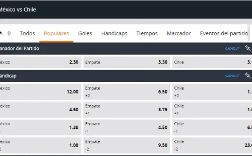 Para Betsson, el gran favorito para ganar este partido amistoso entre México y Chile es la selección azteca, que paga 2,30 veces lo que juegues, por sobre los 3,10 que paga Chile, si piensas que los de Martín Lasarte se quedan con el compromiso. Ahora, el empate paga 3,30 veces lo que apuestes.
