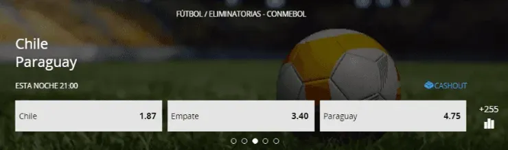 Para Betsson, el gran favorito para ganar en este partido de las Eliminatorias Sudamericanas al Mundial de Qatar 2022 es Chile, que paga 1,87 veces lo que apuestes, por sobre los 4,75 que paga Paraguay si crees que la visita se queda con los tres puntos en San Carlos de Apoquindo. Ahora, si piensas que termina en empate, paga 3,40 veces lo que apuestes.