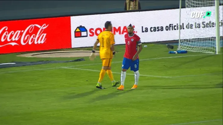 El “¡bien!” retumbó en el vacío Estadio Nacional por parte de todos los autorizados a estar y el primero en ir donde el de Viluco fue, precisamente, Arturo Vidal, quien le chocó la diestra con todo en un tremendo gesto de aprobación por su acción y demostrando el profesionalismo y el amor por la Roja de ambos.