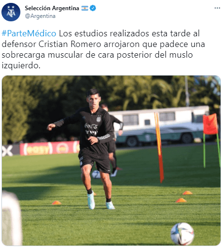 En Argentina la espera es máxima con respecto a lo que podía pasar con Cristian Romero, quizá su mejor noticia en esta doble fecha de las Eliminatorias Sudamericanas pensando en el encuentro contra la Selección Chilena en la Copa América luego de marcharse con molestias frente a Colombia.